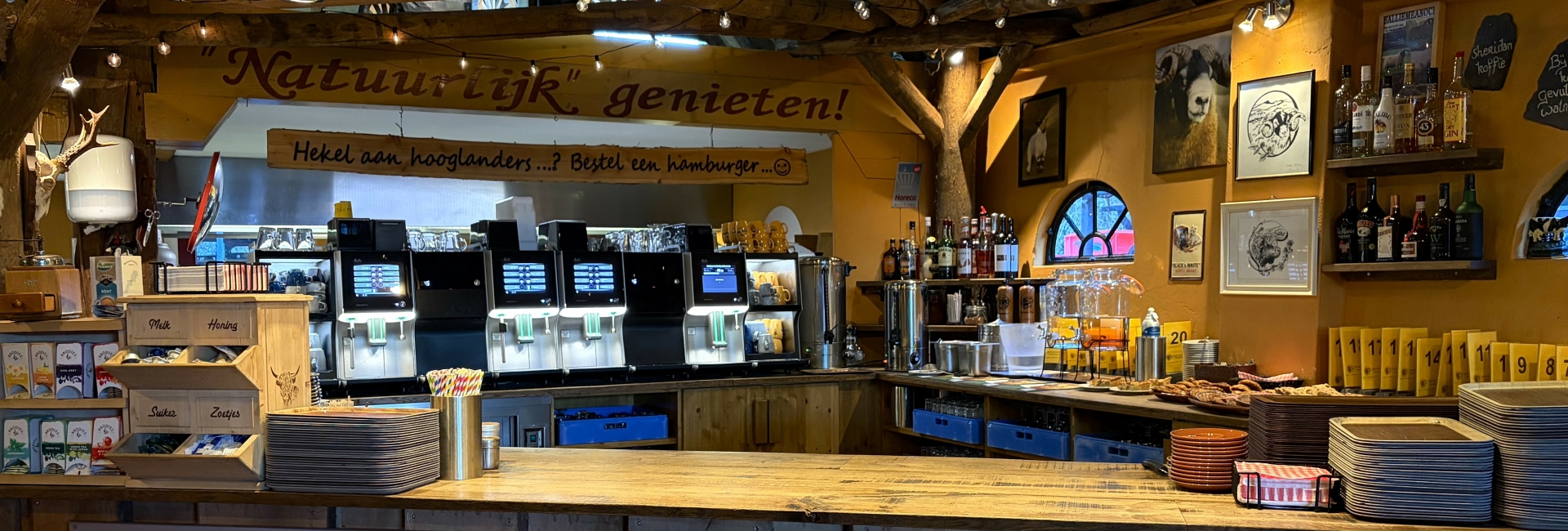 Bestellen doet u bij ons aan de bar, waarna u uw drinken gelijk meeneemt en het eten bij u gebracht wordt.